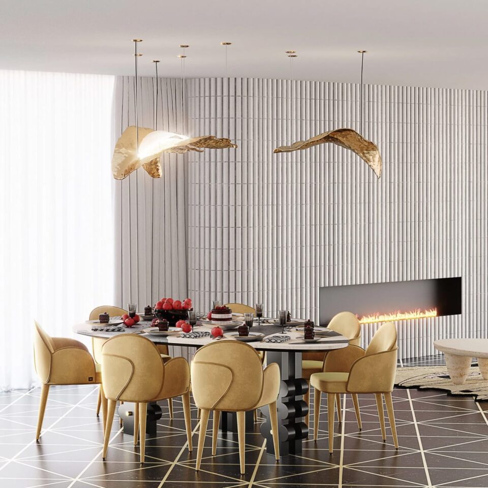 Leafus suspension lamp unveils a subtle breeze of fresh and modern design. A luxury suspension lamp with an organic and elegant shape.
